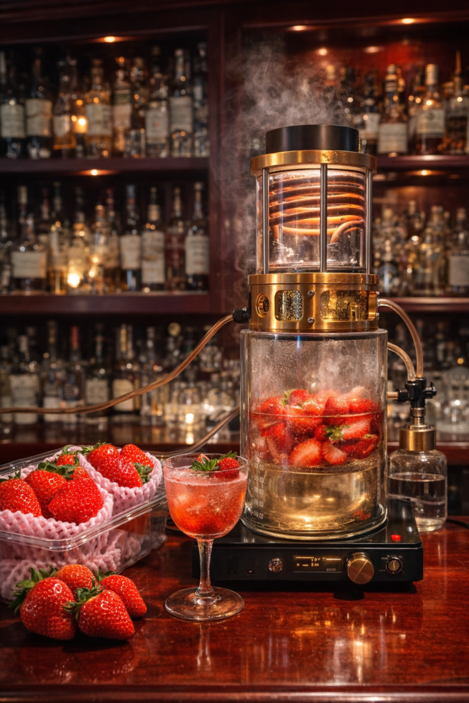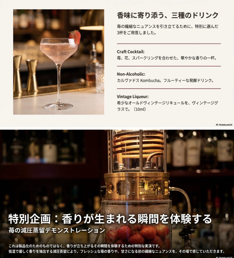 イチゴの為に選んだお酒とクラフトドリンクを、