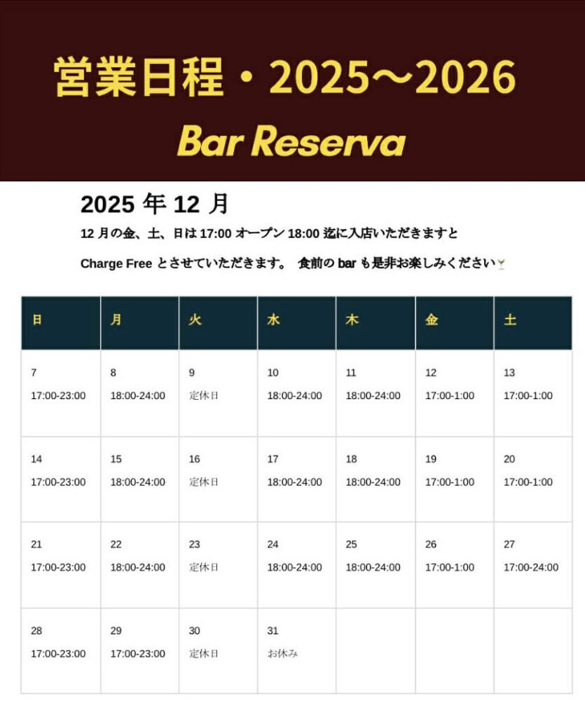 それに併せて18:00迄に入店いただきますとCharge Freeとさせていただきます。